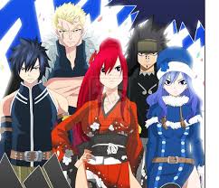 Juvia, Gajeel, Laxus, Gray dan Erza mereka bersama mengadu semangat mereka.